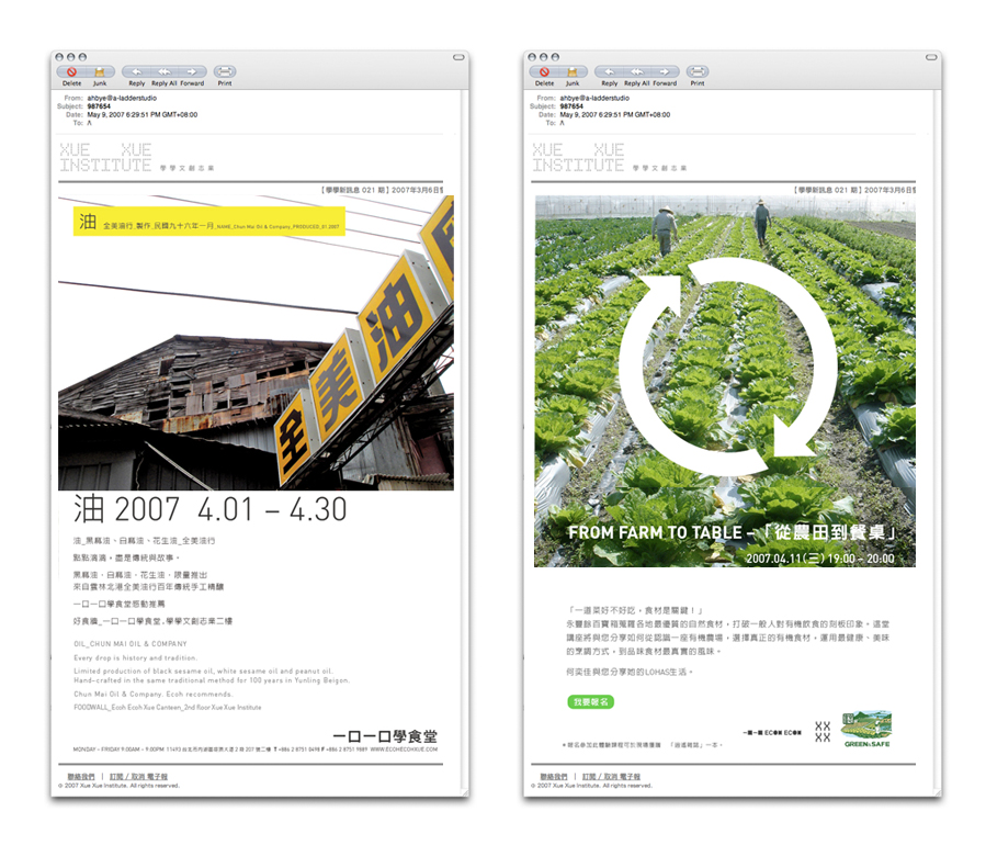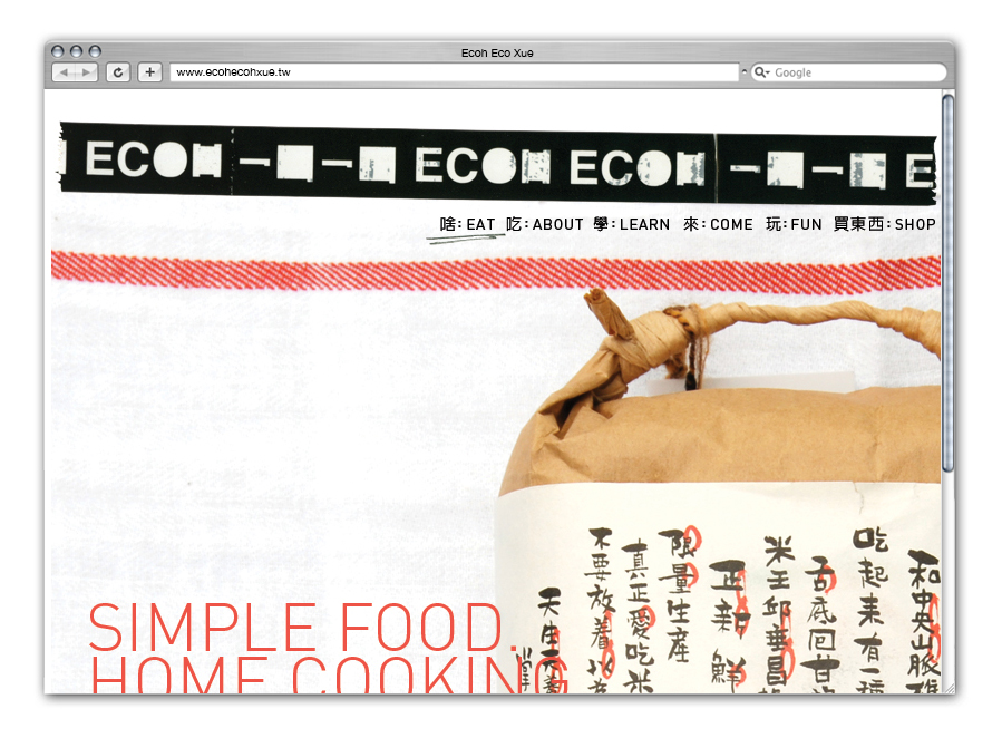E-coh is the English pronunciation of "one bite" in Mandarin. Ecoh Ecoh Xue literally translates to "One Bite One Bite Study". This final logo design combined the Mandarin and English both with a similar character filling treatment. The play on boldness and simplicity matched well with the ethos of the kitchen - Simple food. Home cooking.