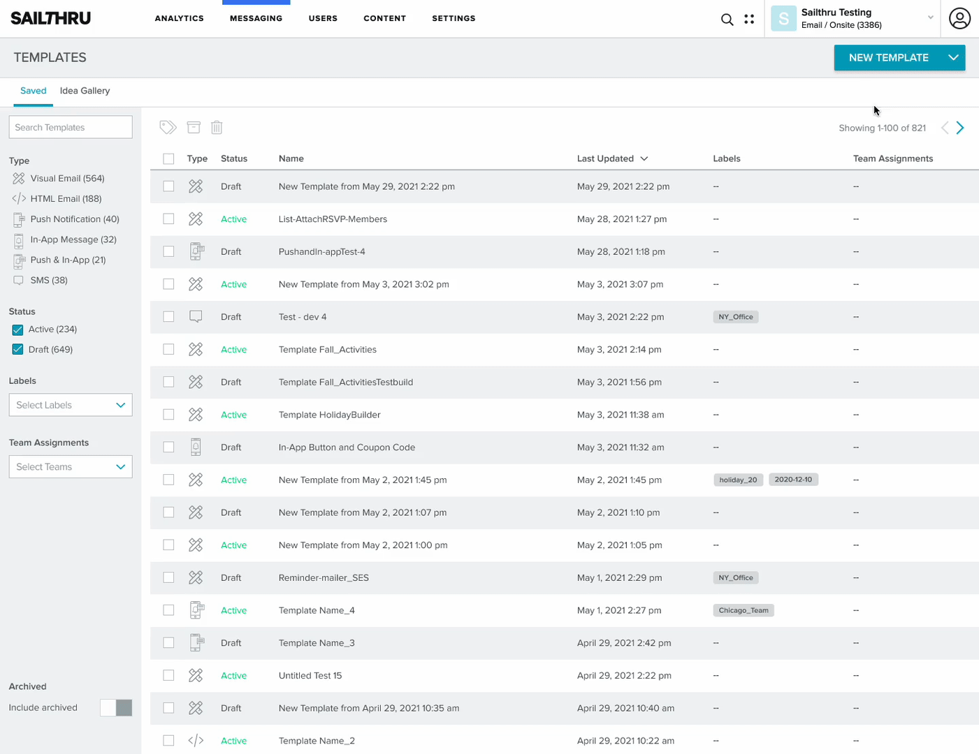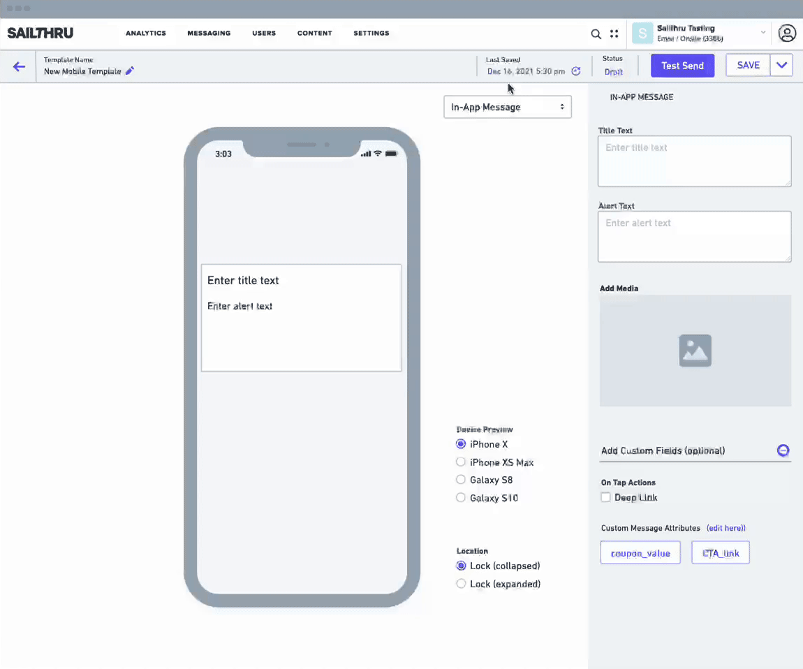 In the migration staging for Mobile Apps into the core Sailthru platform, the first stage requirements were to mirror the steps/user patterns of creating an email template in the core product.