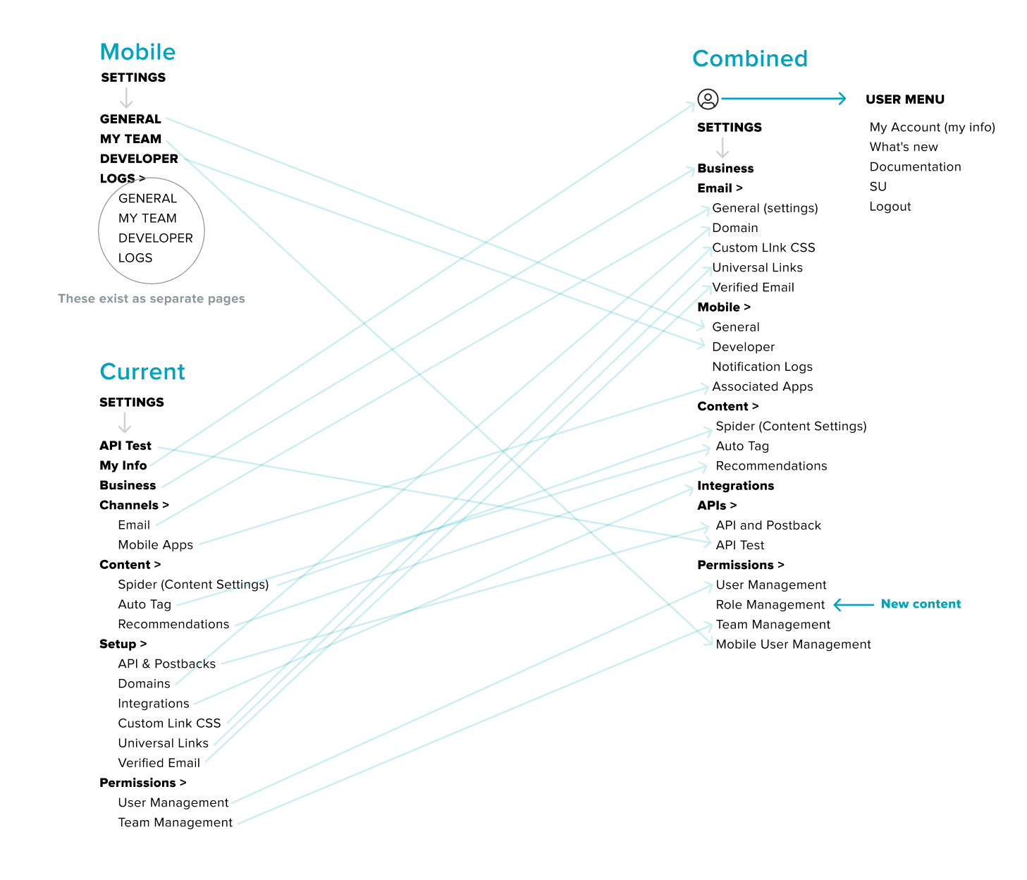 Upcoming new feature releases required changes to Sailthru's navigation and information architecture. The navigation was the first universal area of the product to be upgraded with the new UI/UX.